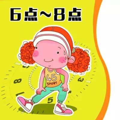 6点~8点: 到楼下走走。起床后半小时内应该积极活动身体。晨练可帮助身体更有效地燃烧脂肪,室外运动效果更好。晨练没必要做高强度运动,绕着小区散步一圈即可。